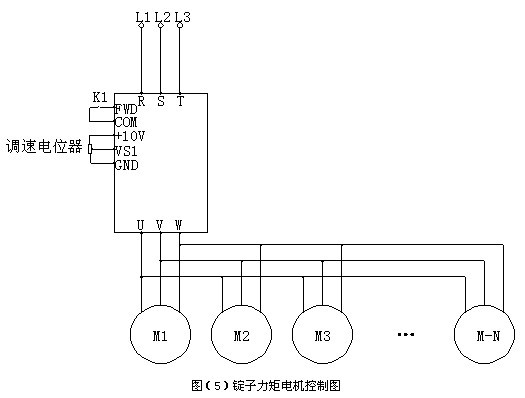 在選用變頻器時(shí)先要了解各單元負(fù)載的特性,根據(jù)負(fù)載的特性選用適當(dāng)?shù)淖冾l器。該生產(chǎn)線中,收卷機(jī)由原先采用可控硅控制力矩電機(jī)改為變頻器控制,該收卷機(jī)正常工作時(shí)電流約為44A。因而這里選用AC80變頻器加三相異步電機(jī),替代原力矩電機(jī)收卷方案。每臺(tái)變頻器拖動(dòng)一臺(tái)普通電機(jī),采用力矩控制模式收卷,控制精度和響應(yīng)速度較力矩電機(jī)有大幅提高。詳細(xì)替代方法可參見《奕創(chuàng)飛AC80矢量型變頻器替代力矩電機(jī)應(yīng)用方案》。