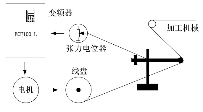 奕創(chuàng)飛ECF100-L變頻器在電纜行業(yè)的應用,實際上很好地解決了電線電纜行業(yè)中電動放線架及收線輪的電氣控制問題。由于接線簡單,變頻器內(nèi)自帶的PID與閉環(huán)控制功能,省去了以前必須由A/D、D/A模塊來轉(zhuǎn)換的工作及PLC的編程工作。這一切,讓一個普通的電氣維修人員都有可以做到。因此奕創(chuàng)飛ECF100-L是改造現(xiàn)有電線電纜行業(yè)中原來機械式的放線架的一個首選。