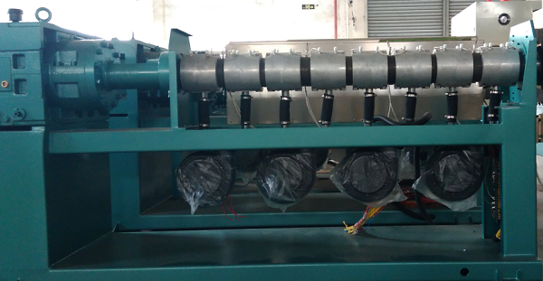 擠出機(jī)是塑料加工機(jī)械中應(yīng)用非常廣泛的設(shè)備。工作的流程為:通過(guò)填料機(jī)進(jìn)行固體物料的填充,固體物料的輸送,熔合隔離,熔體的輸送最后通過(guò)模具成型。按其擠出執(zhí)行機(jī)構(gòu)又分為螺桿類(lèi)和非螺桿類(lèi),本文主要介紹奕創(chuàng)飛工控產(chǎn)品特別是擠出專(zhuān)用溫控模塊在螺桿類(lèi)擠出機(jī)上的出色表現(xiàn)。下圖為設(shè)備現(xiàn)場(chǎng)圖片