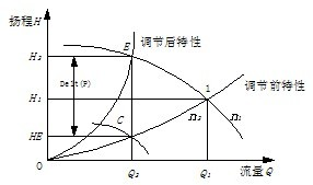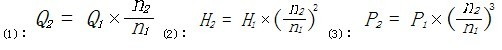 P∝Q*H當(dāng)電動(dòng)機(jī)的轉(zhuǎn)速由n1變化到n2時(shí), Q、 H、 P與轉(zhuǎn)速的關(guān)系如下: