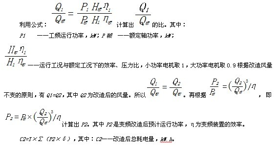 改造前工頻運(yùn)行功率計(jì)算公式P1=U×I×1.732×COS Φ,其中: