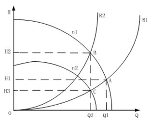 R2-代表風(fēng)機(jī)管路阻力增大到某一數(shù)組時(shí)的阻力特性。
