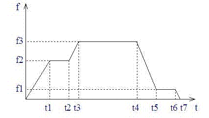 (4)第四階段 t3~t4:重車以變頻器頻率為f3的最大速度穩(wěn)定運(yùn)行,一般,這段過程最長。